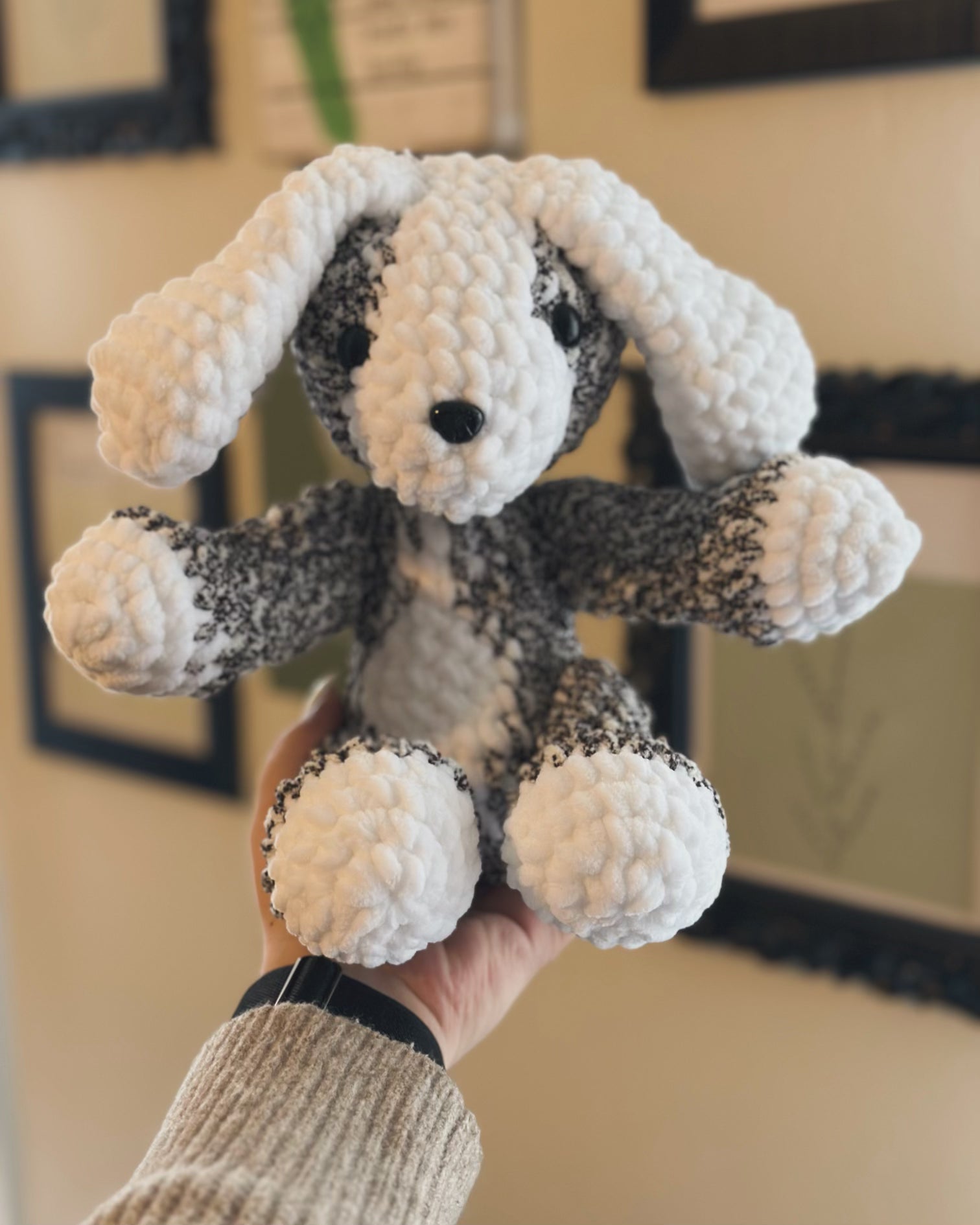 Meet Bagel the Pup, your adorable crocheted companion! With floppy ears and twinkling eyes, he's always ready for fun and cuddles. Perfectly sized for hugs.