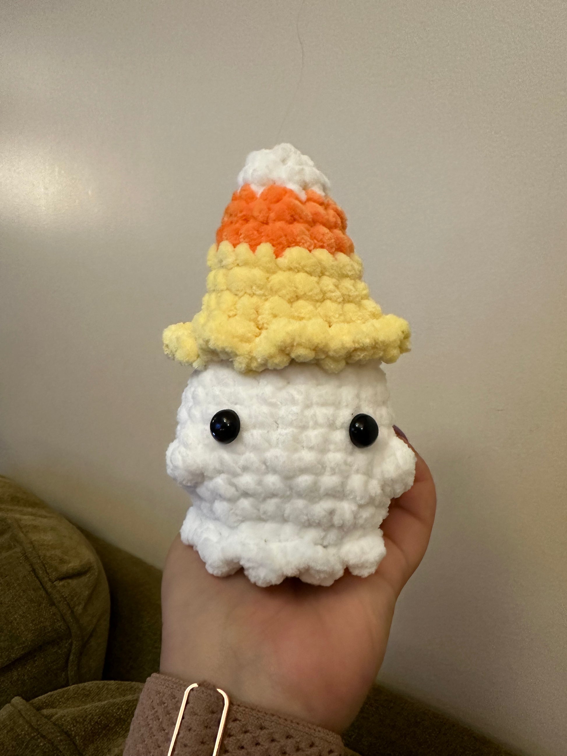 Introducing the spook-tacular Candy Corn Ghost! This adorable plushy combines the irresistible sweetness of candy corn with the playful spirit of a ghost.
