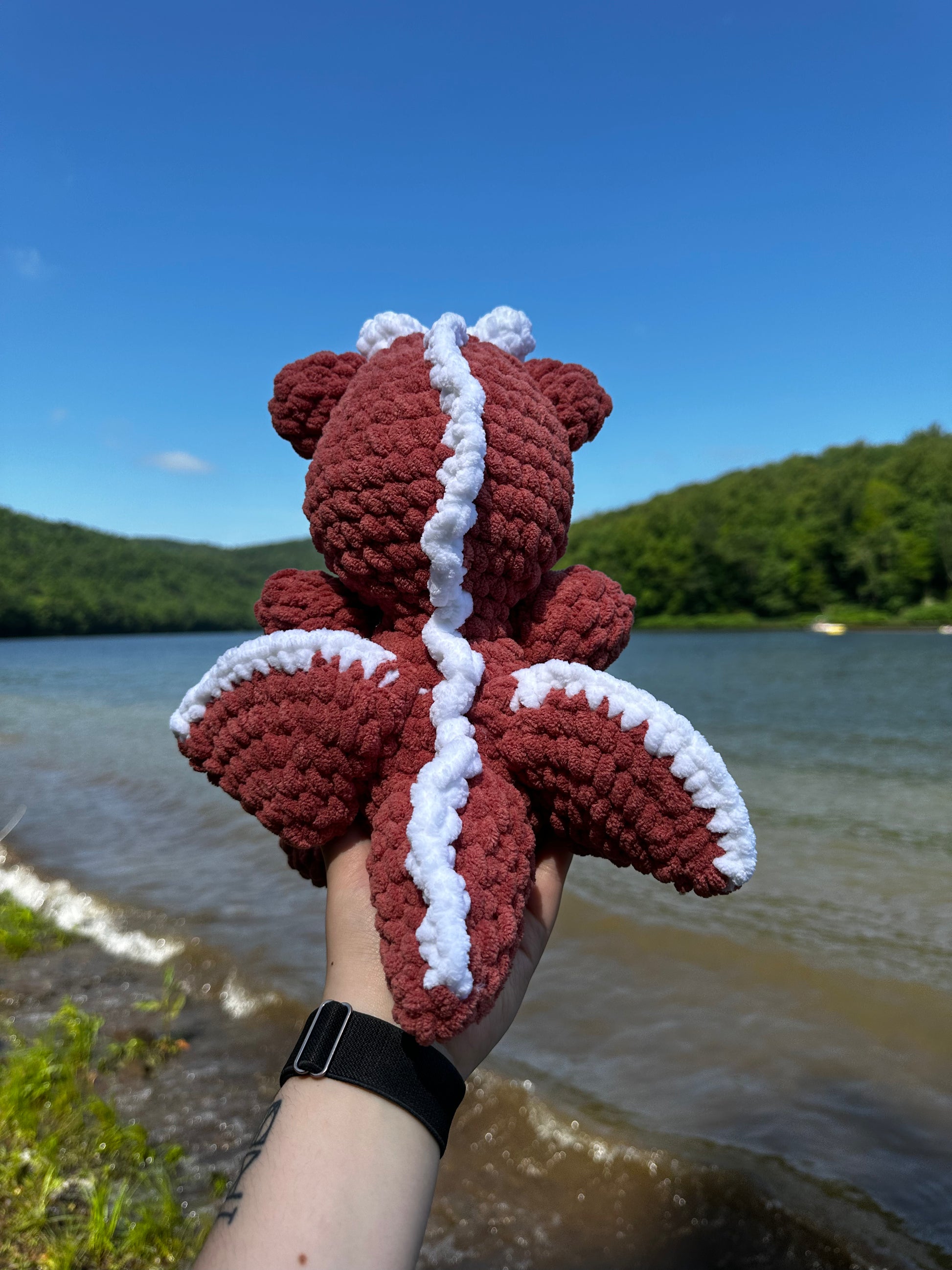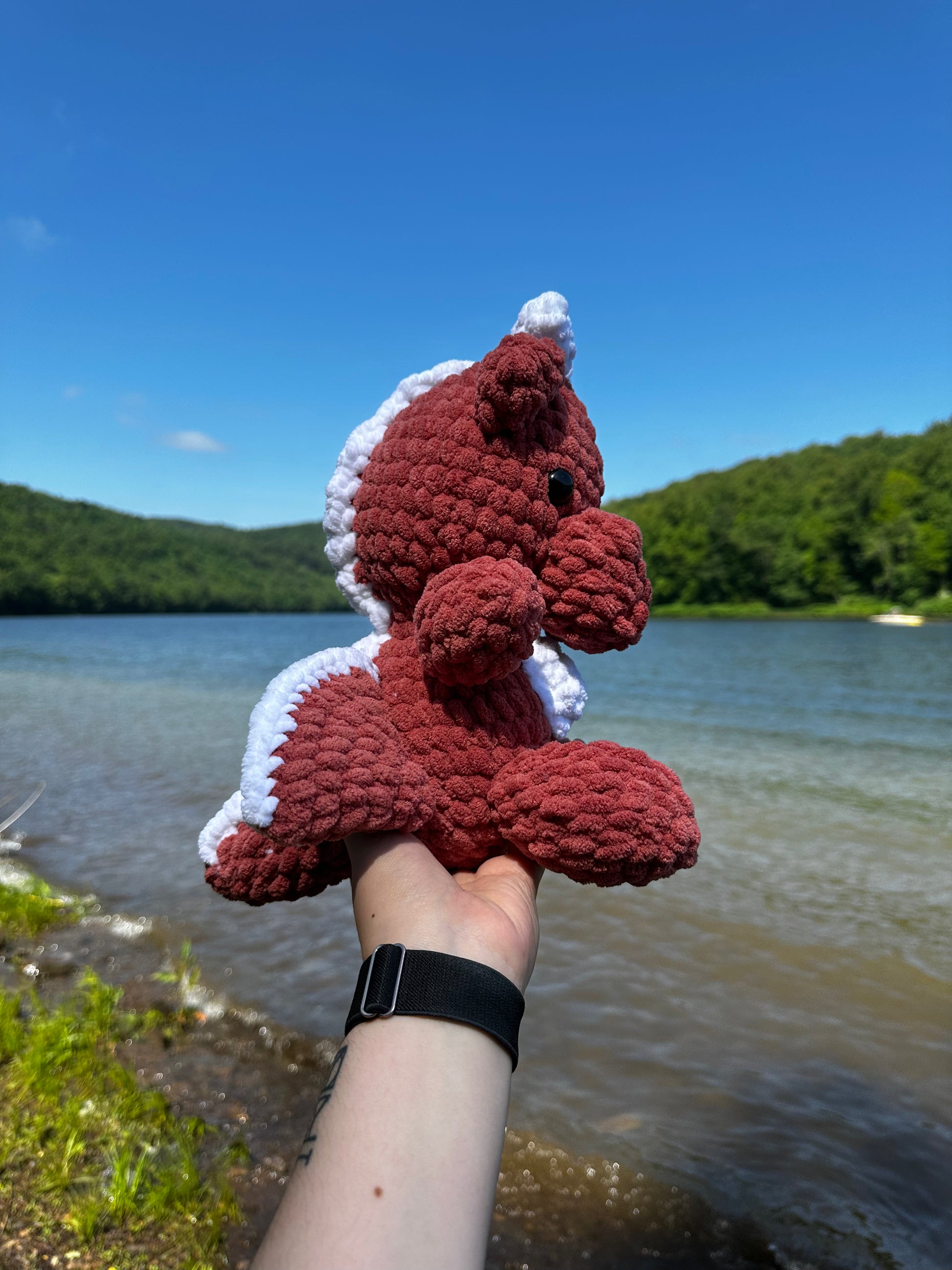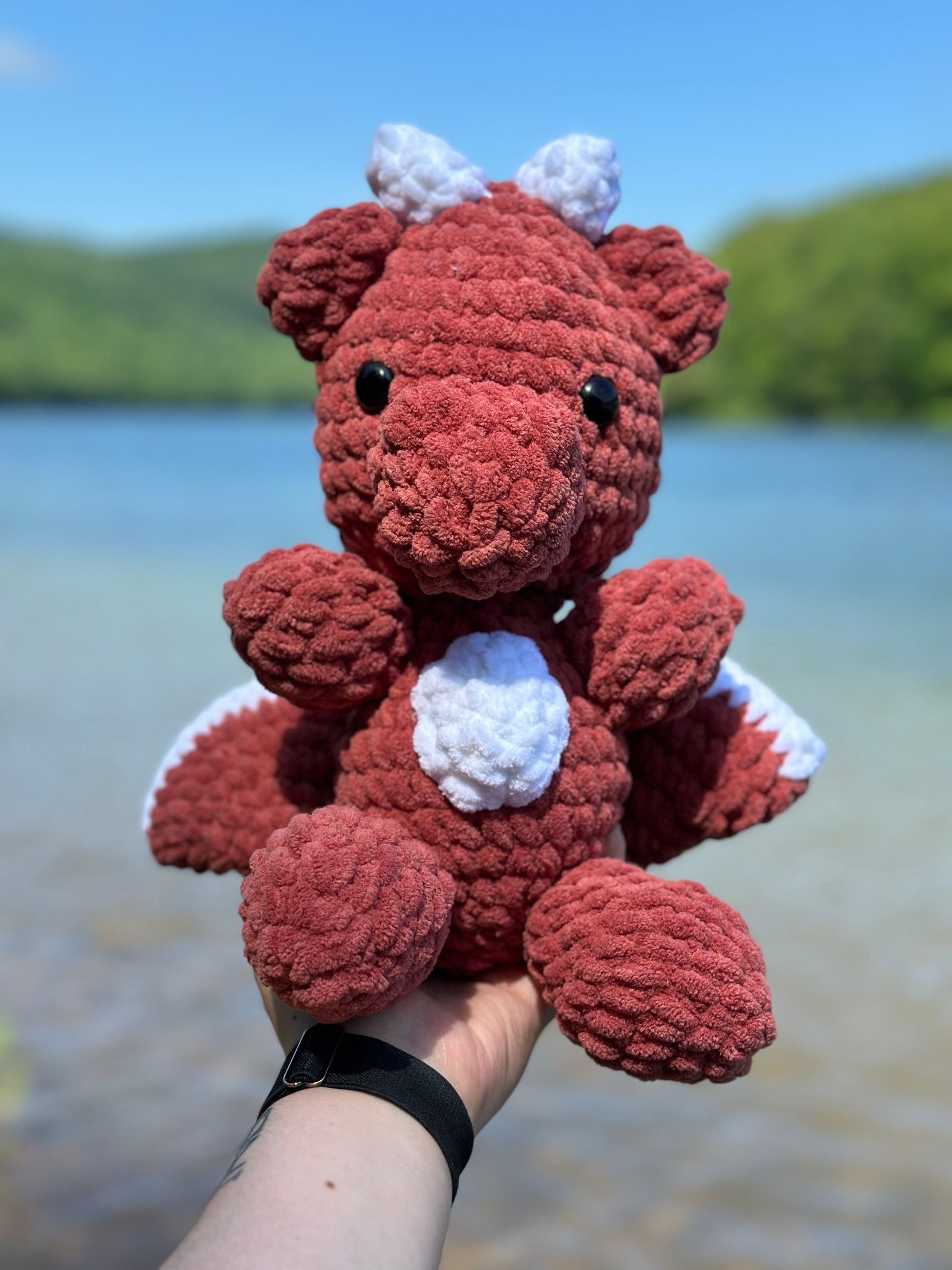 Introducing the Handmade Crochet Dragon Plushie – a soft, vibrant, and cuddly companion. With detailed scales, wings, and expressive eyes, this dragon is perfect for snuggling or display. Crafted with love, it's a magical addition to any collection or a delightful gift for fantasy lovers of all ages.