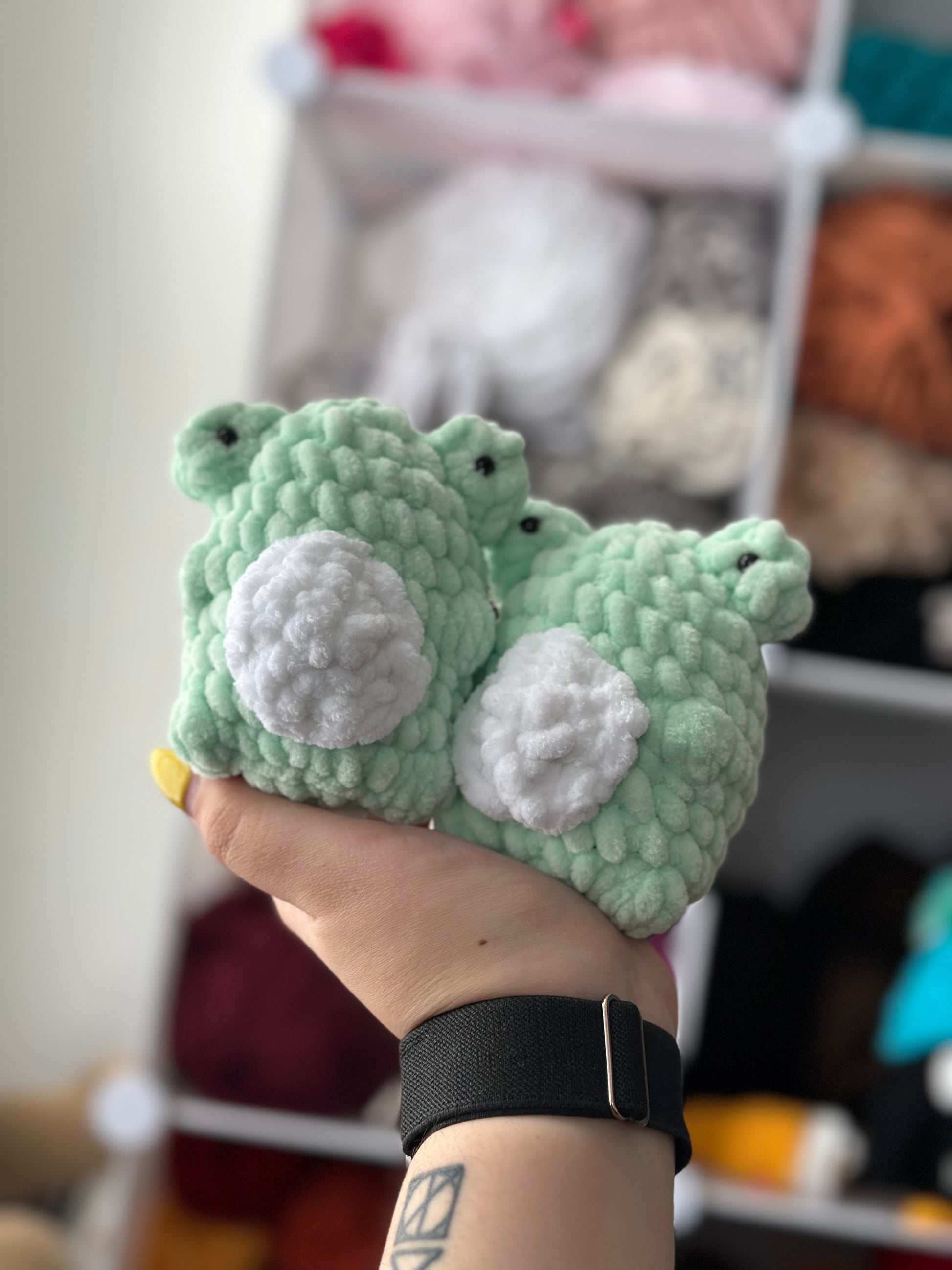 Meet Frankie, the cuddly crochet frog! With his vibrant green body and big eyes, he's bursting with charm. Frankie is handmade with love and ready to bring smiles to all!