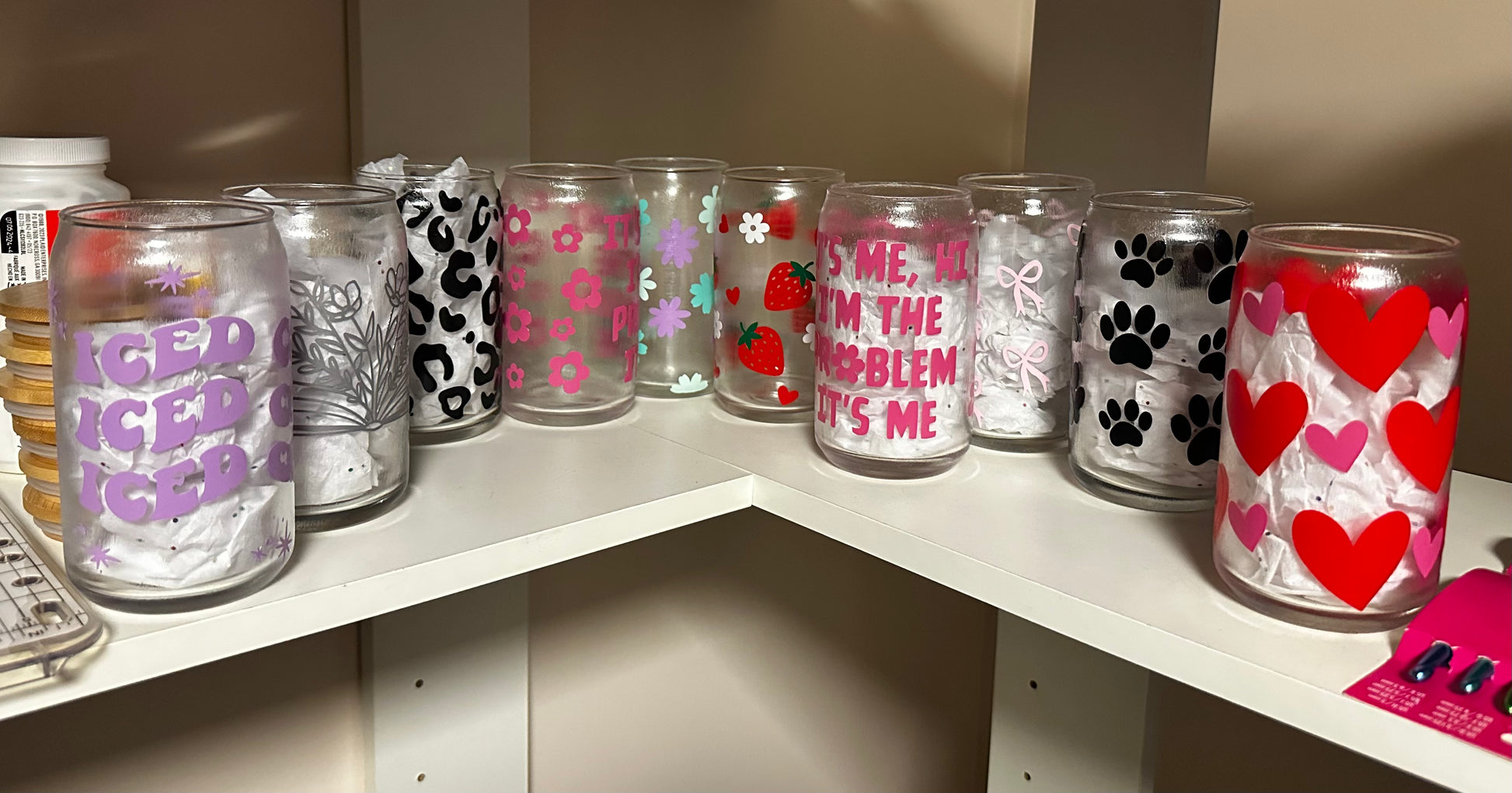 These glasses add some sparkle and design to your morning, afternoon or late night coffee, tea, soda... possibilities are endless!! Custom Orders are possible so please reach out if you do not see something that interests you!