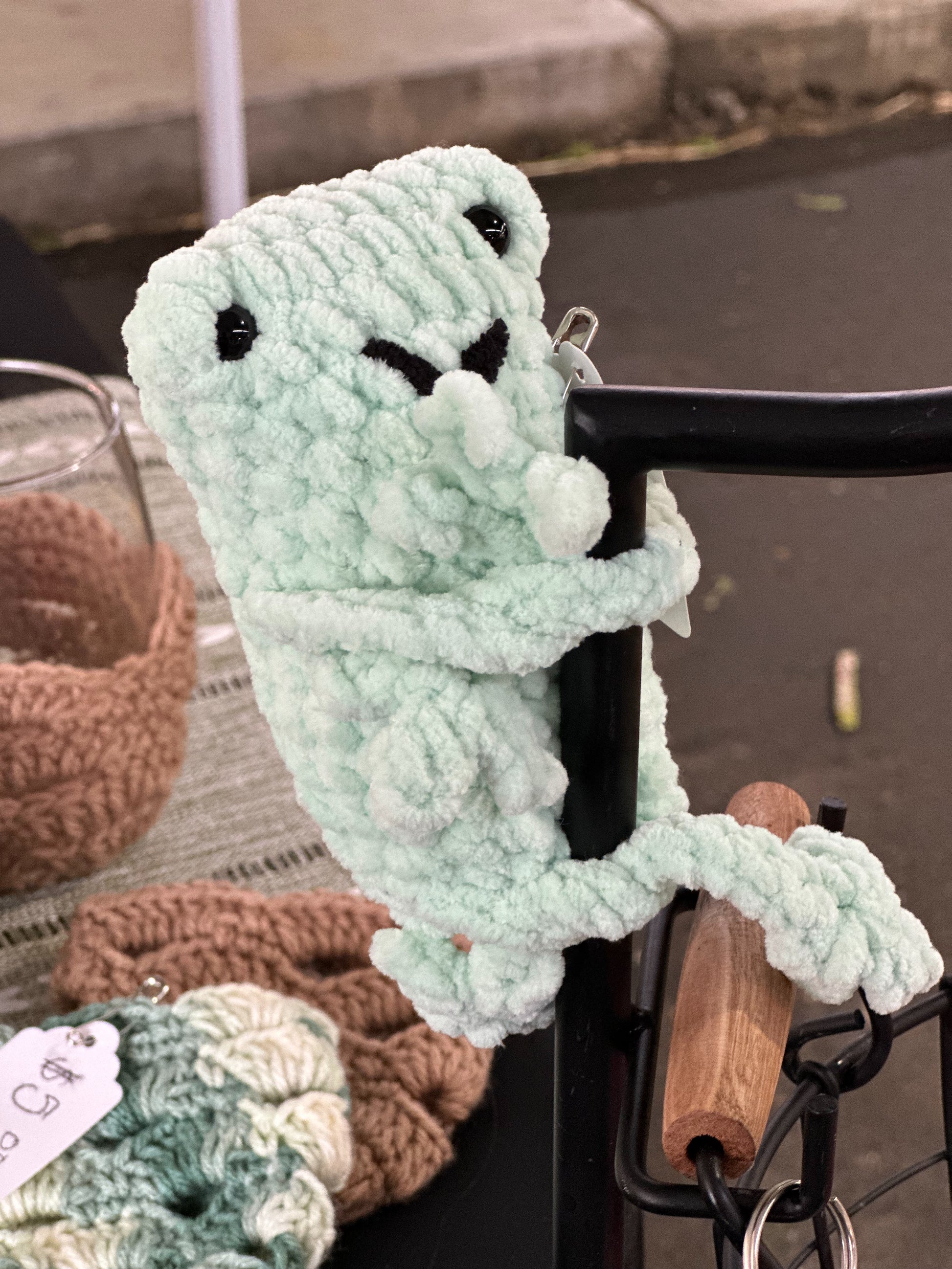 This fun plushy frog has the ability to wrap itself around something to add a funny, cute aspect to any room!