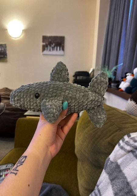 Introducing our crocheted shark: a playful addition to your aquatic collection.