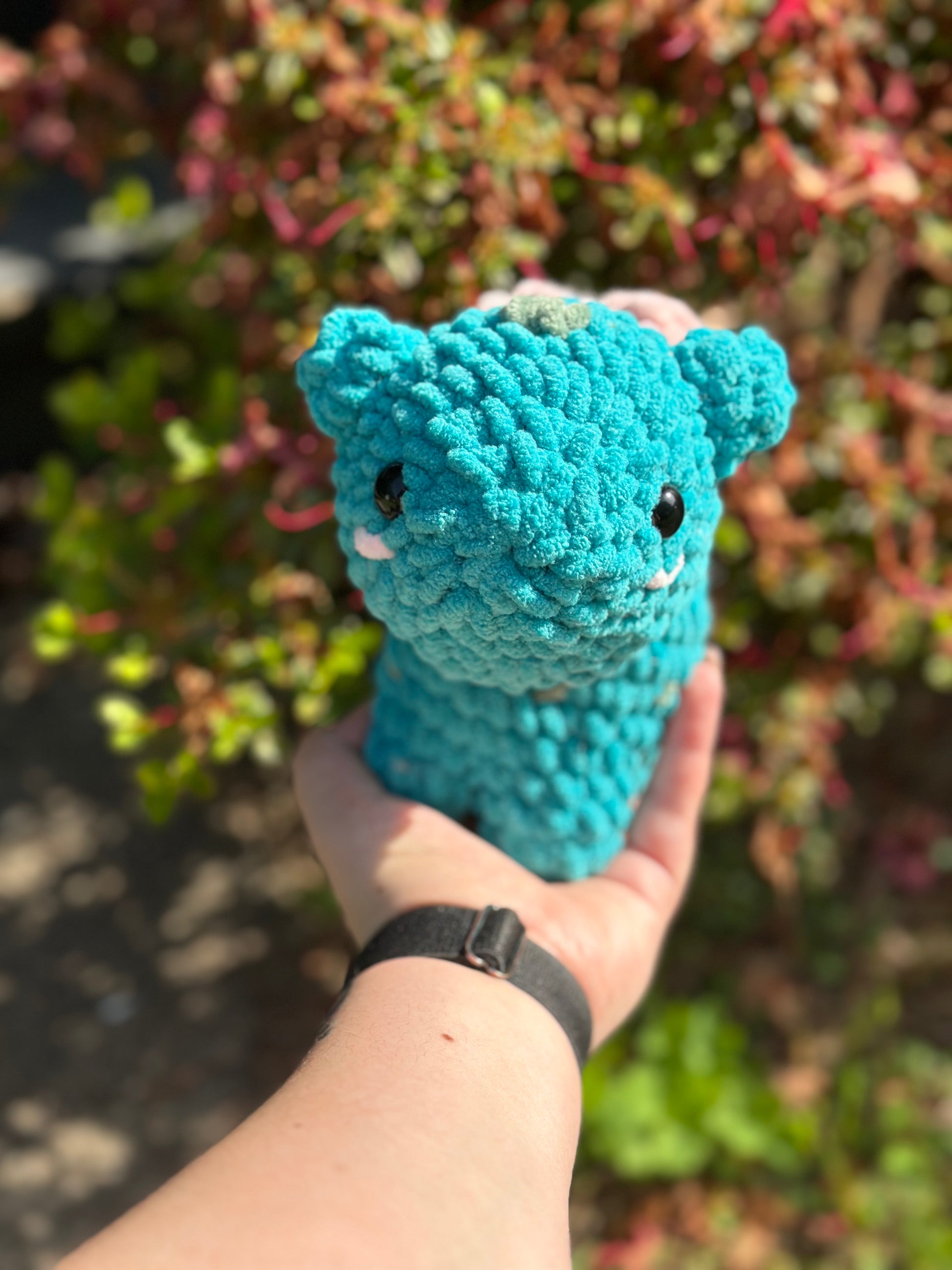 Yarnasaur: A cute crochet plushie capturing the essence of intricate detailing and playful charm.